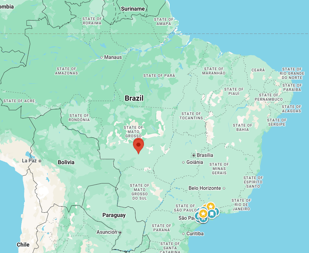17 locations across Mato Grosso, Mato Grosso do Sul, and Goiás