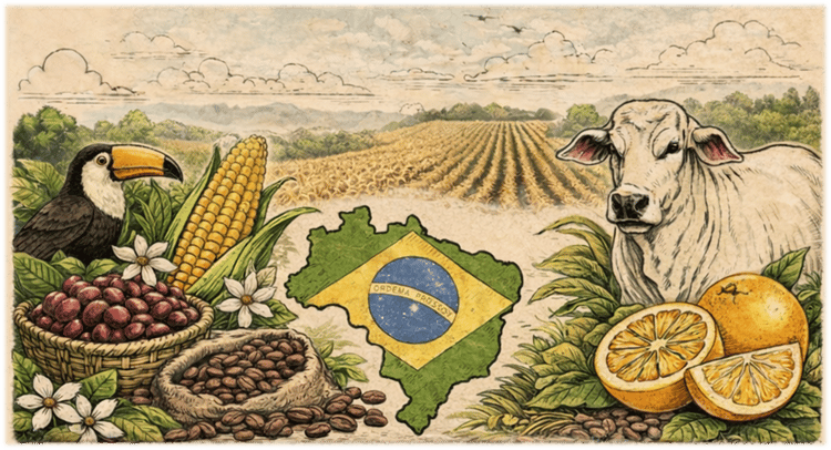 We begin at Laranja Boschiero in Brazil’s orange belt, which supplies roughly 70% of global orange juice exports. The operation also includes coffee production, offering a look at two of Brazil’s key crops — from orchard to processing, including harvesting, quality control, and logistics.