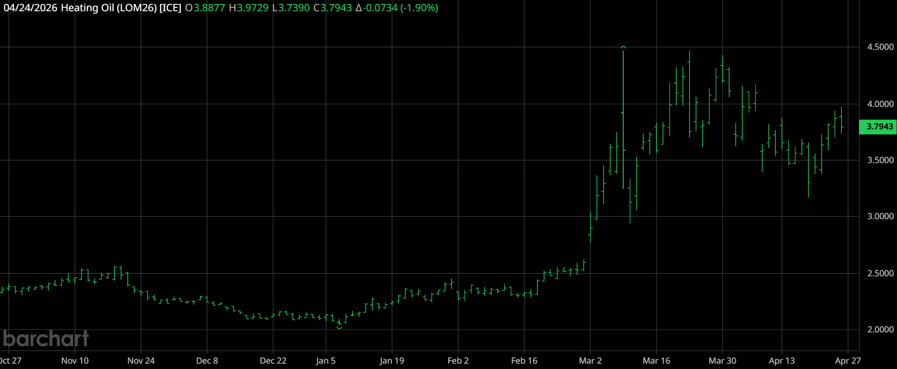 Heating oil moved in similar fashion, up 14.4% on the week and nearly 86% year to date.